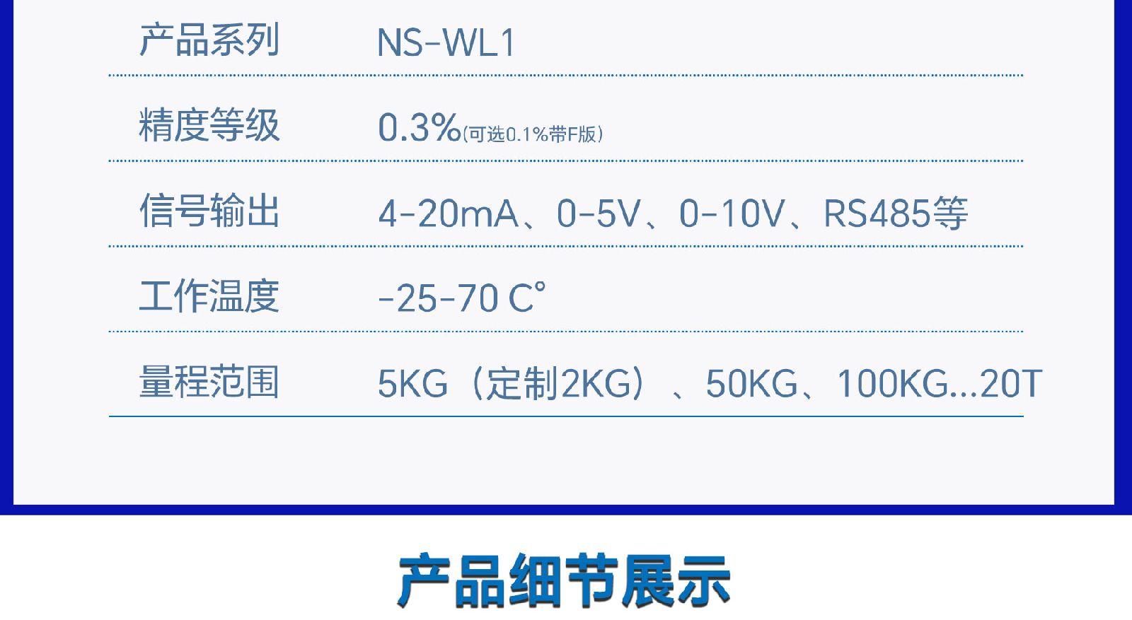 > NS天沐拉压力传感器天沐代理合金钢材质S型剪切结构配标准放大器NS-WL1