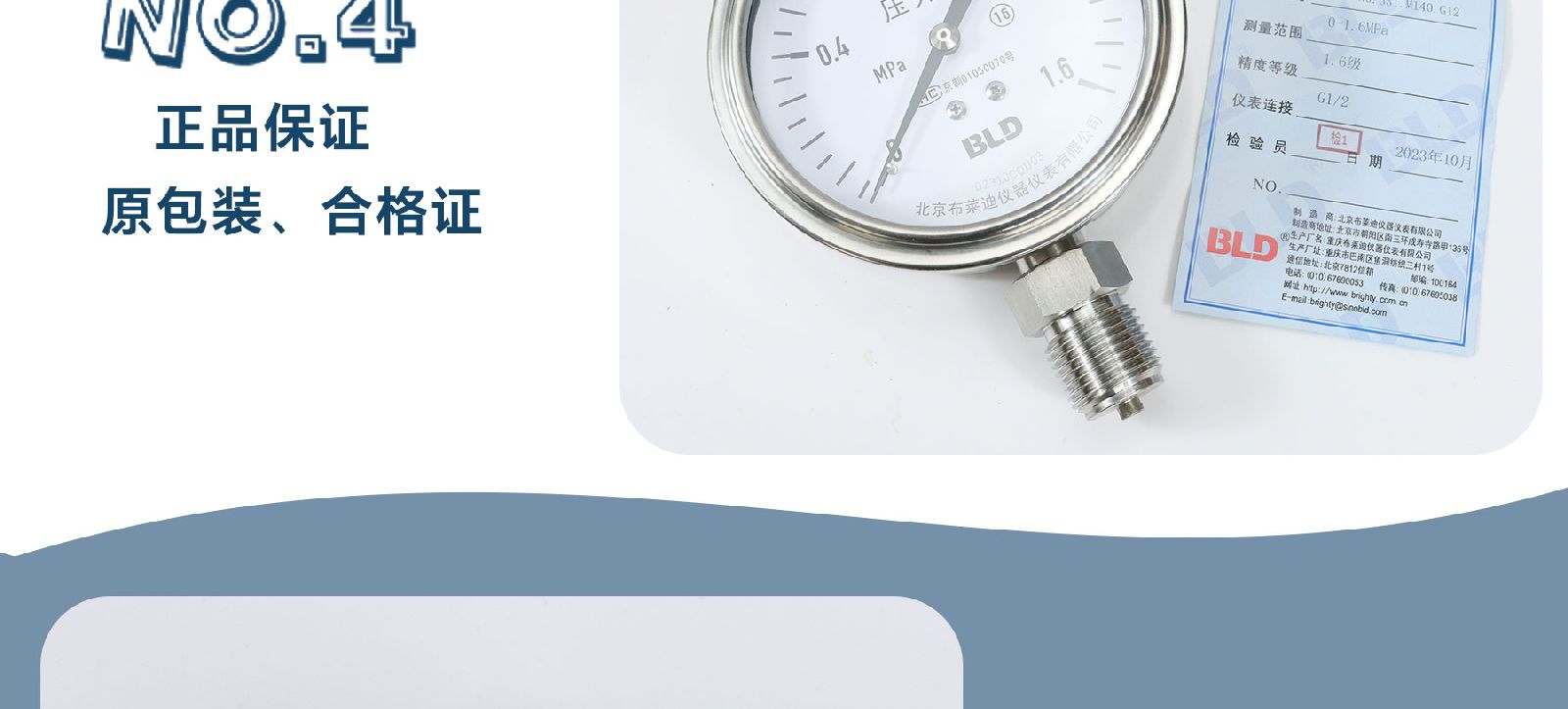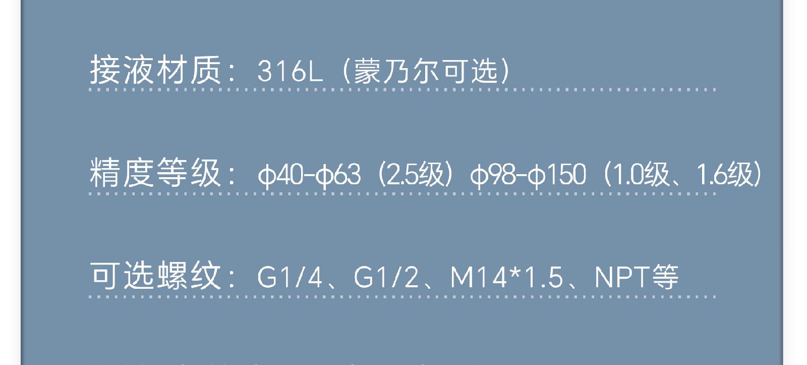 布莱迪BLD全不锈钢压力表轴向精度2.5级304SS表壳包邮YTH-063.ZO