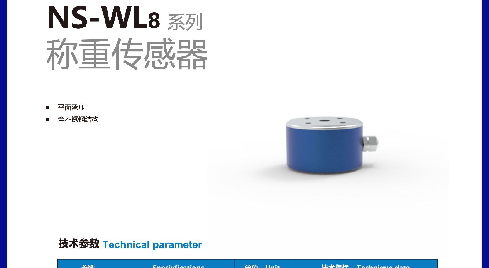 > 天沐代理拉压力传感器平面承压全不锈钢结构包邮工业应用NS-WL8