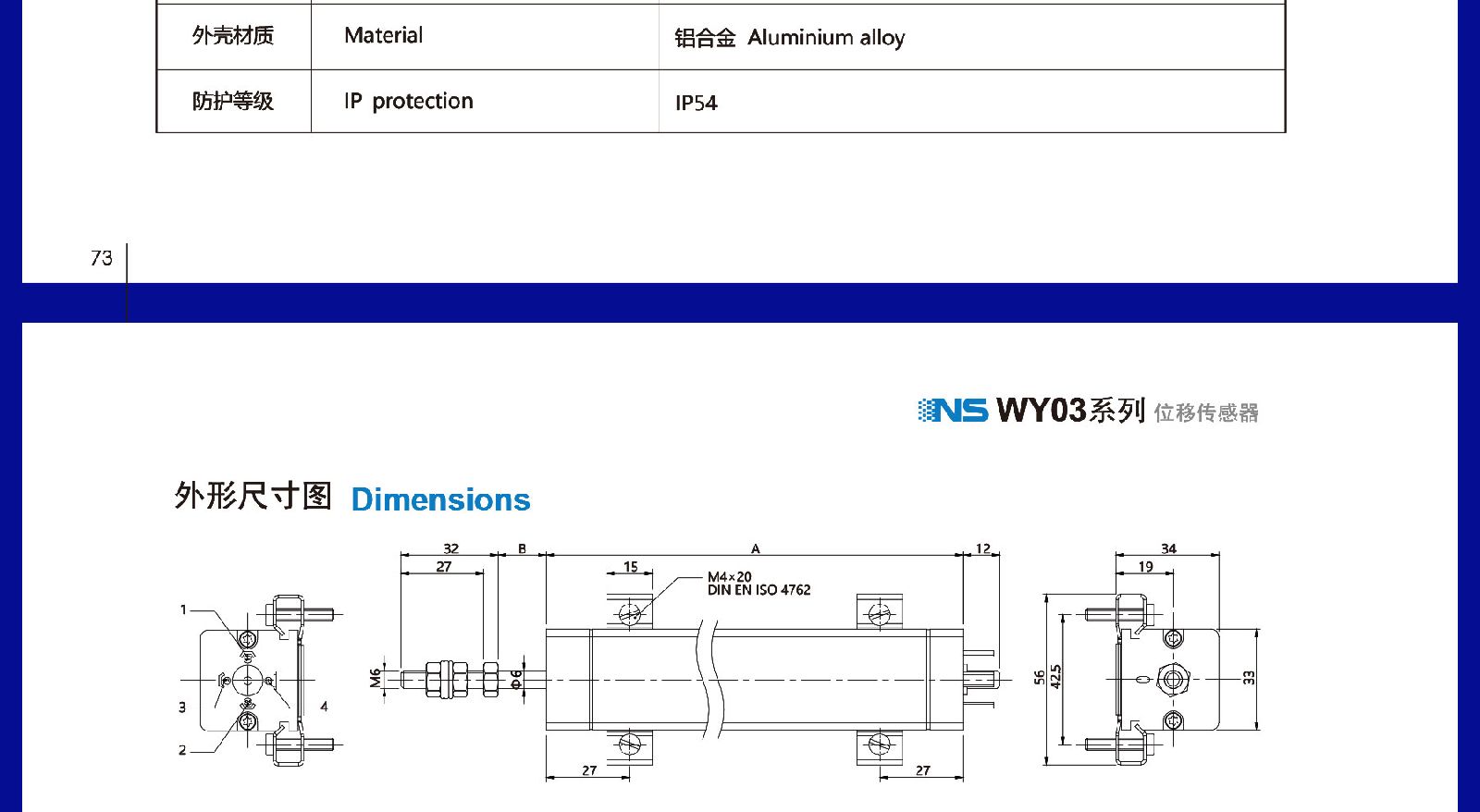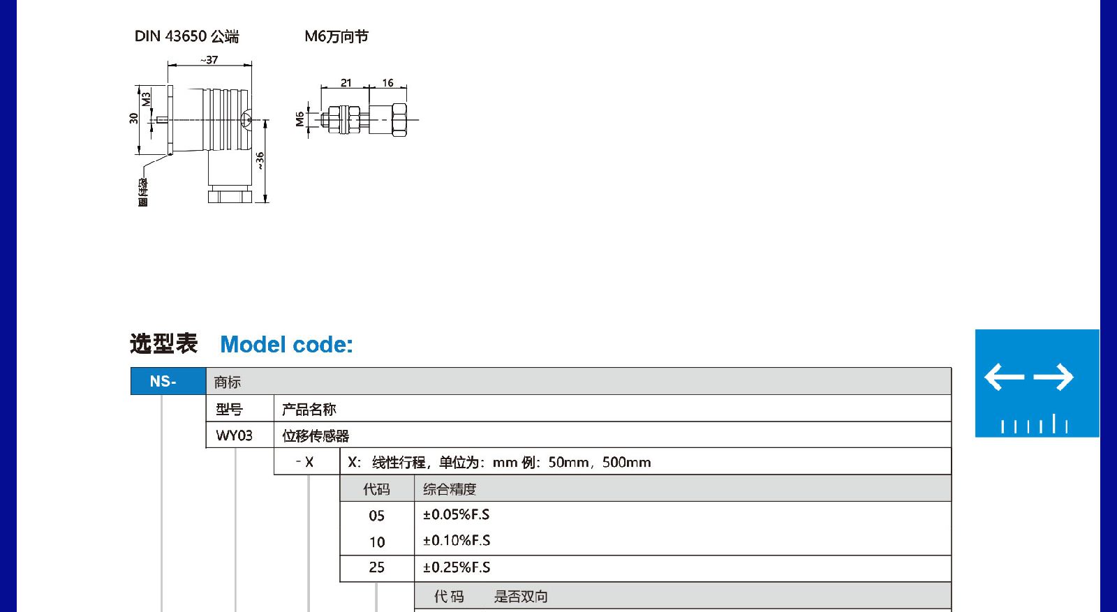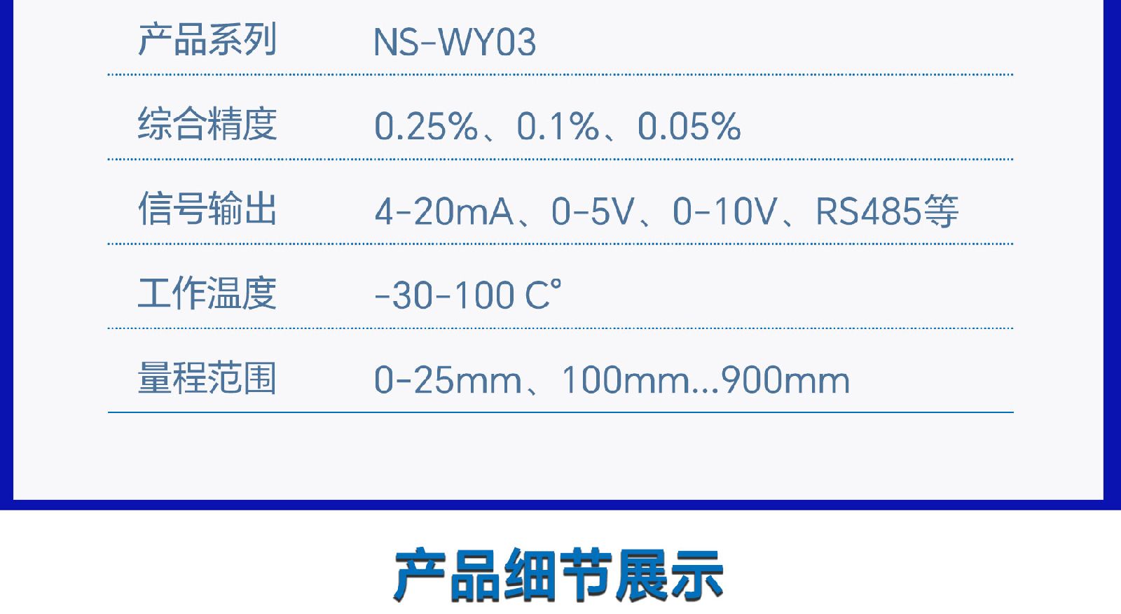 > 天沐位移传感器铝合金材质误差小宽量程代理包邮工业应用 NS-WY03