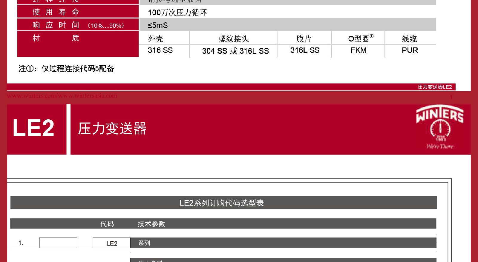 > 文特斯WINTERS压力变送器100万次压力循环316SS外壳代理包邮LE2