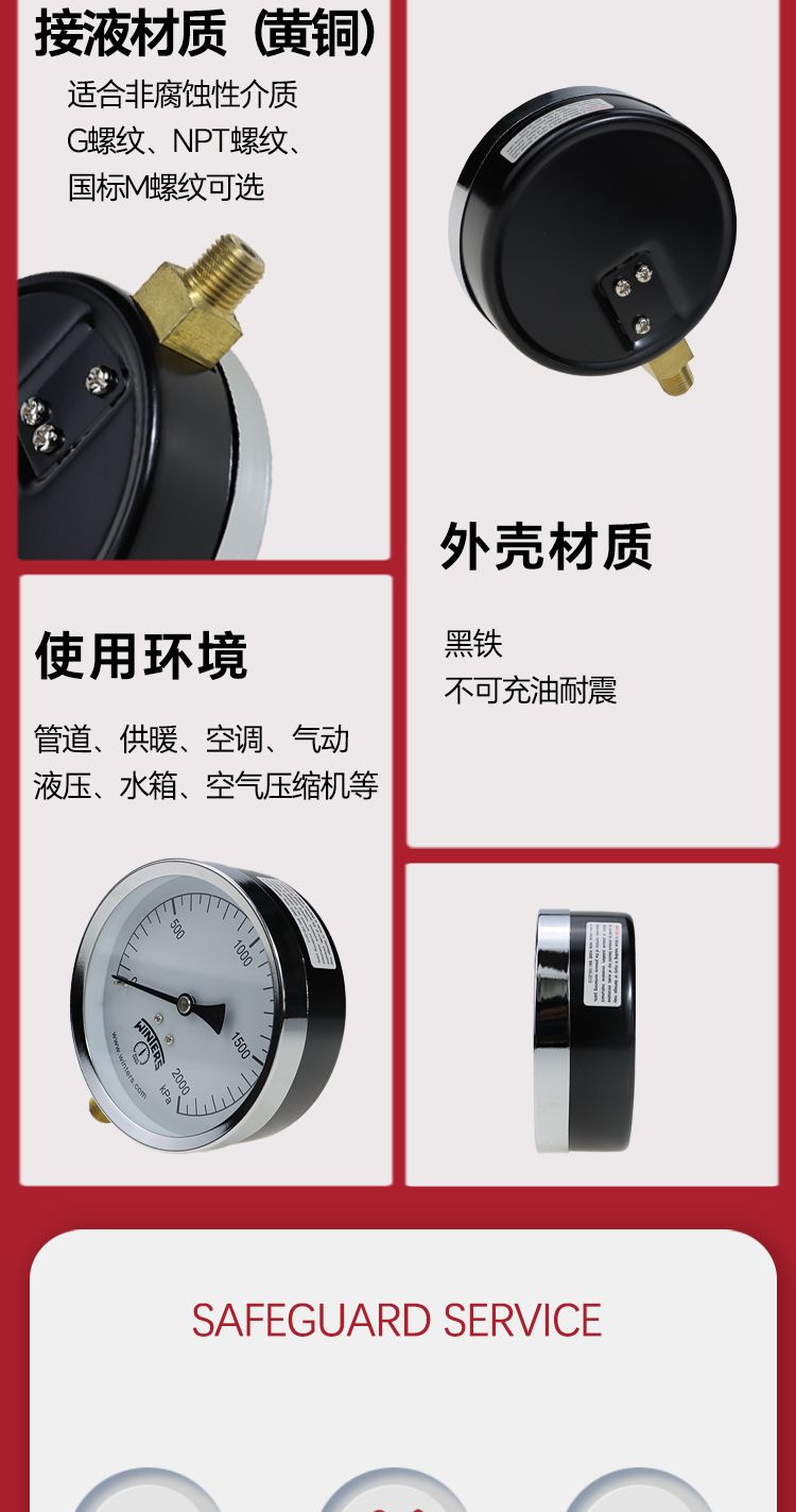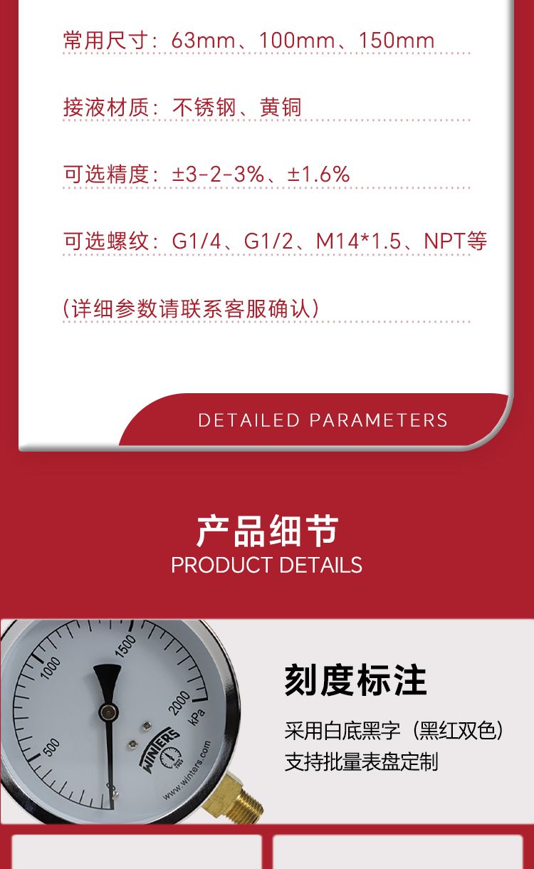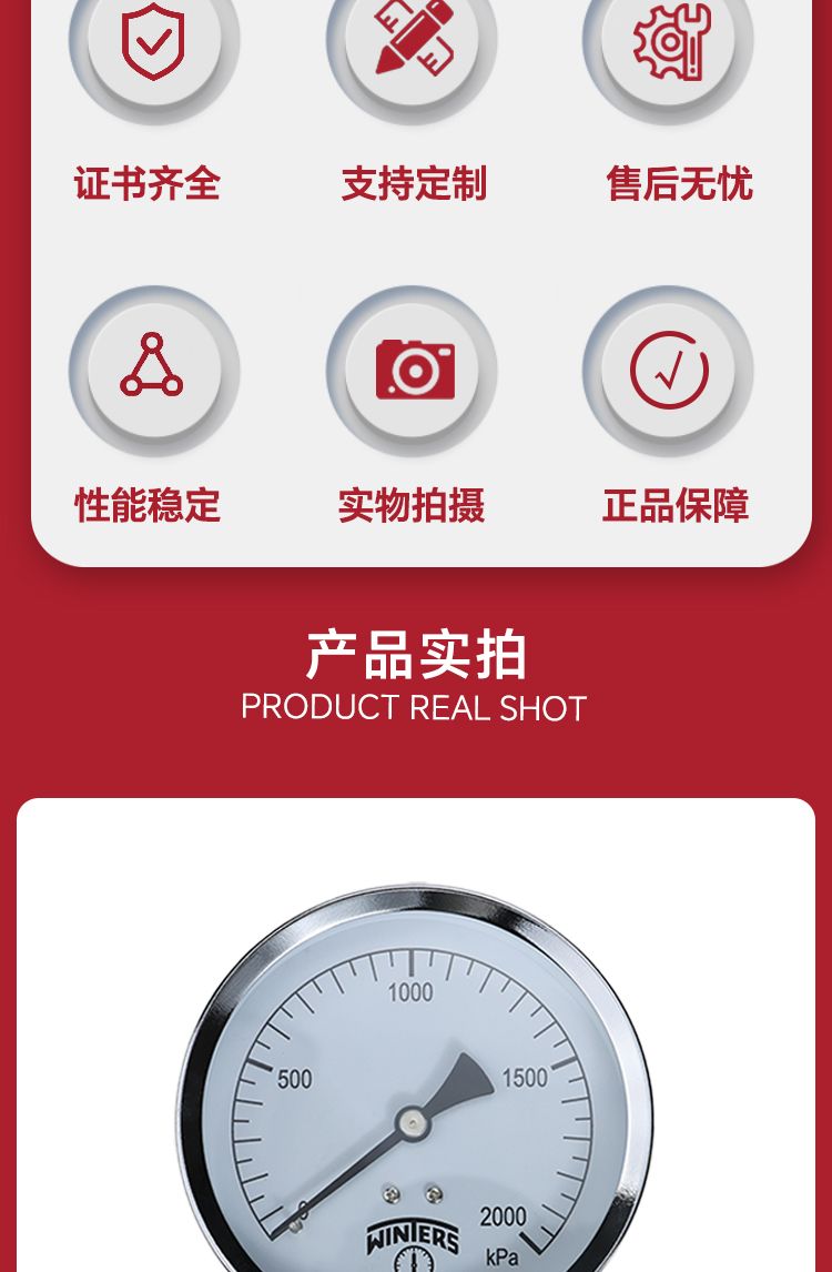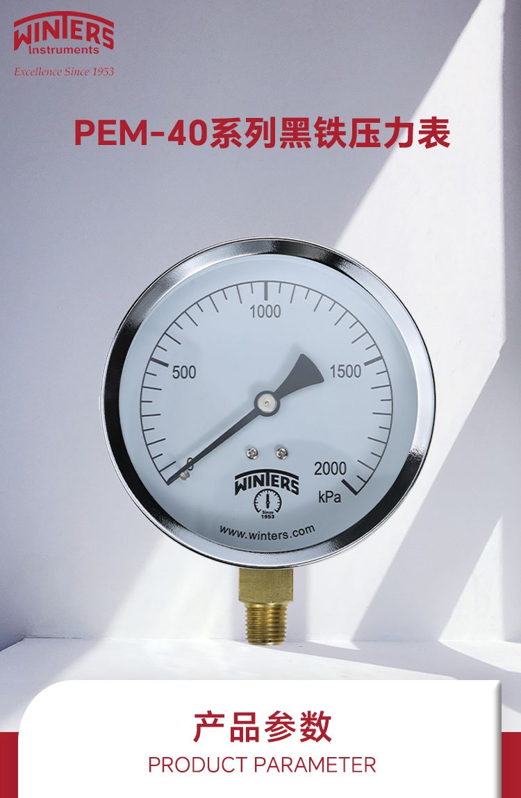> WINTERS文特斯径向经济型压力表黑钢外壳黄铜内件包邮IP52PEM-40