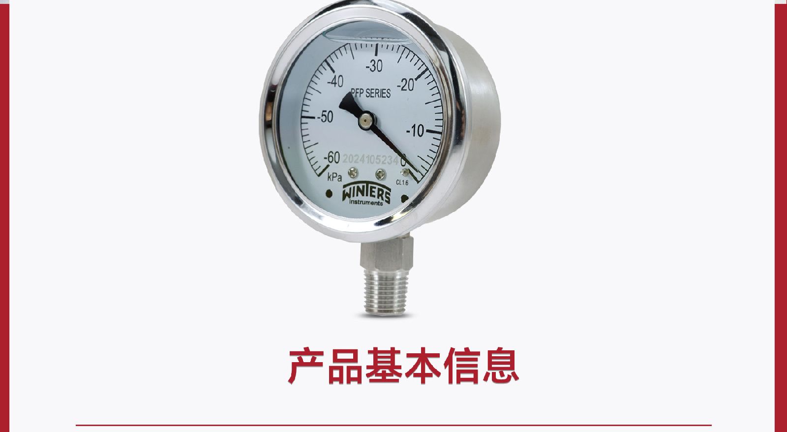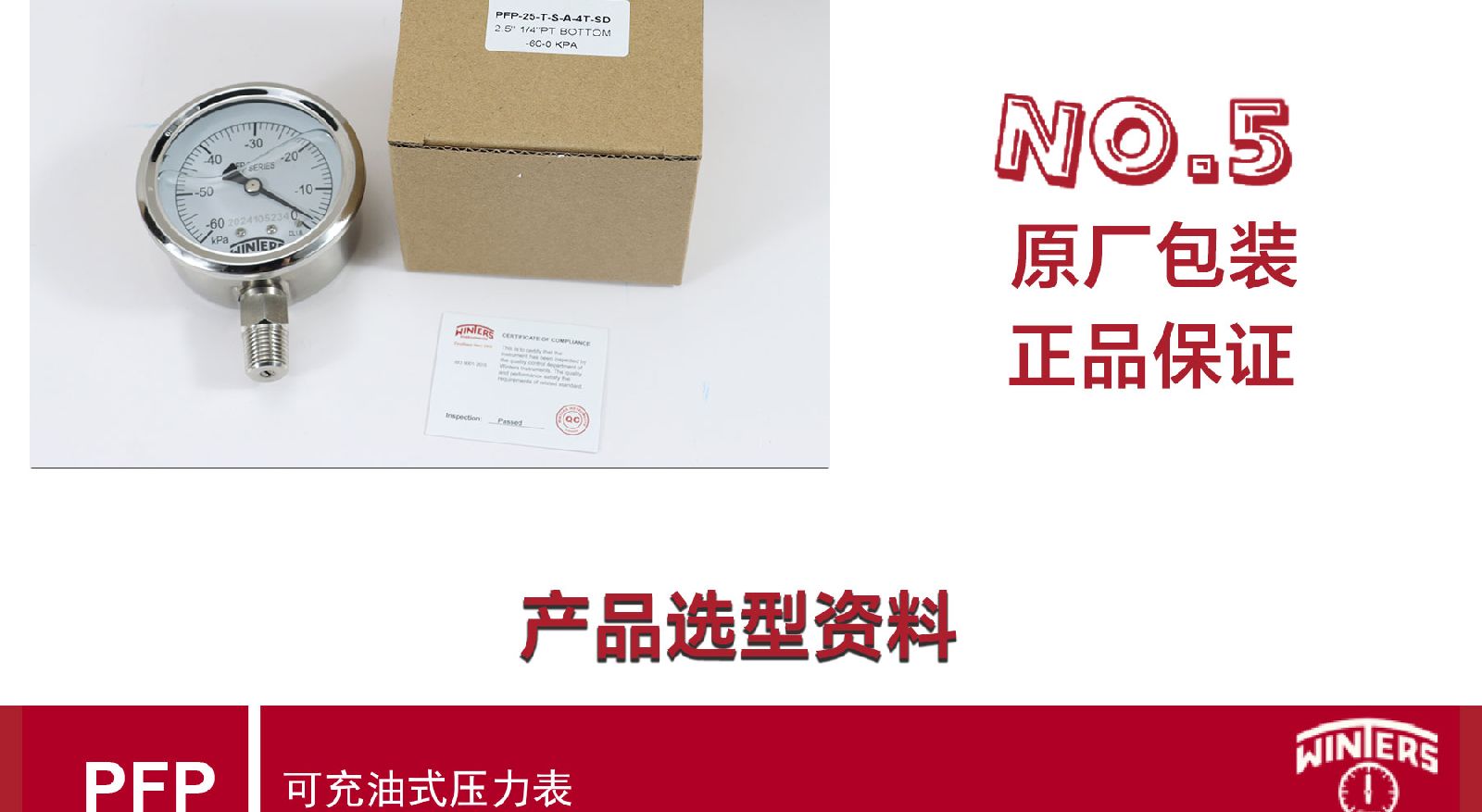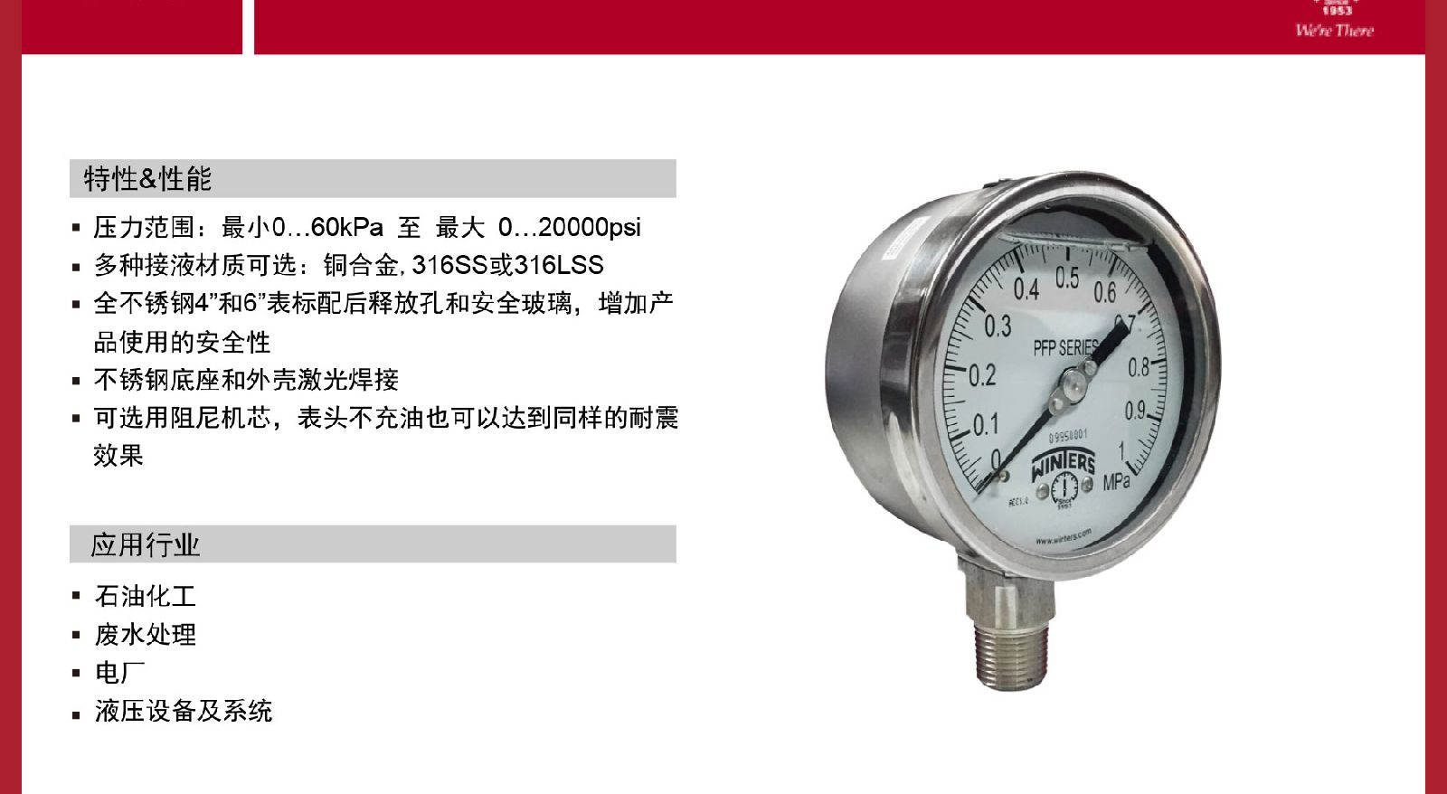 > WINTERS文特斯径向充油式压力表耐震全不锈钢材质IP65包邮PFP-25
