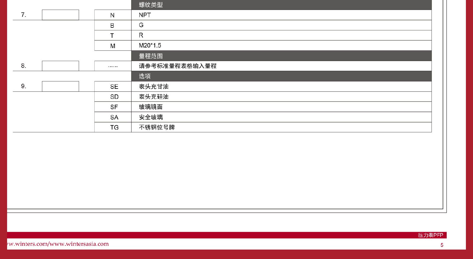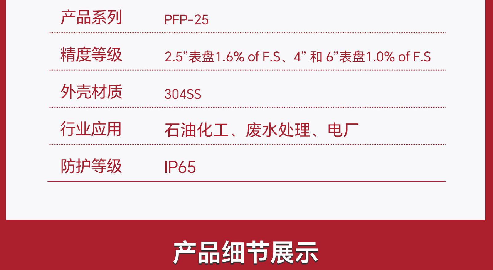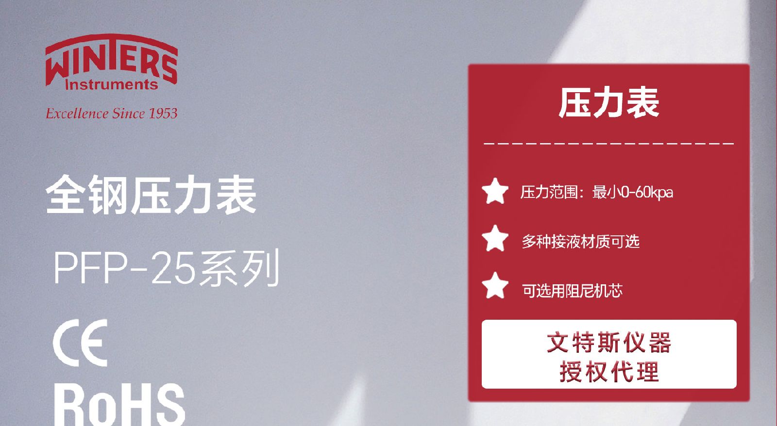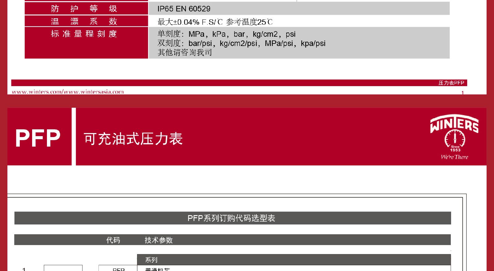 > WINTERS文特斯径向充油式压力表耐震全不锈钢材质IP65包邮PFP-25