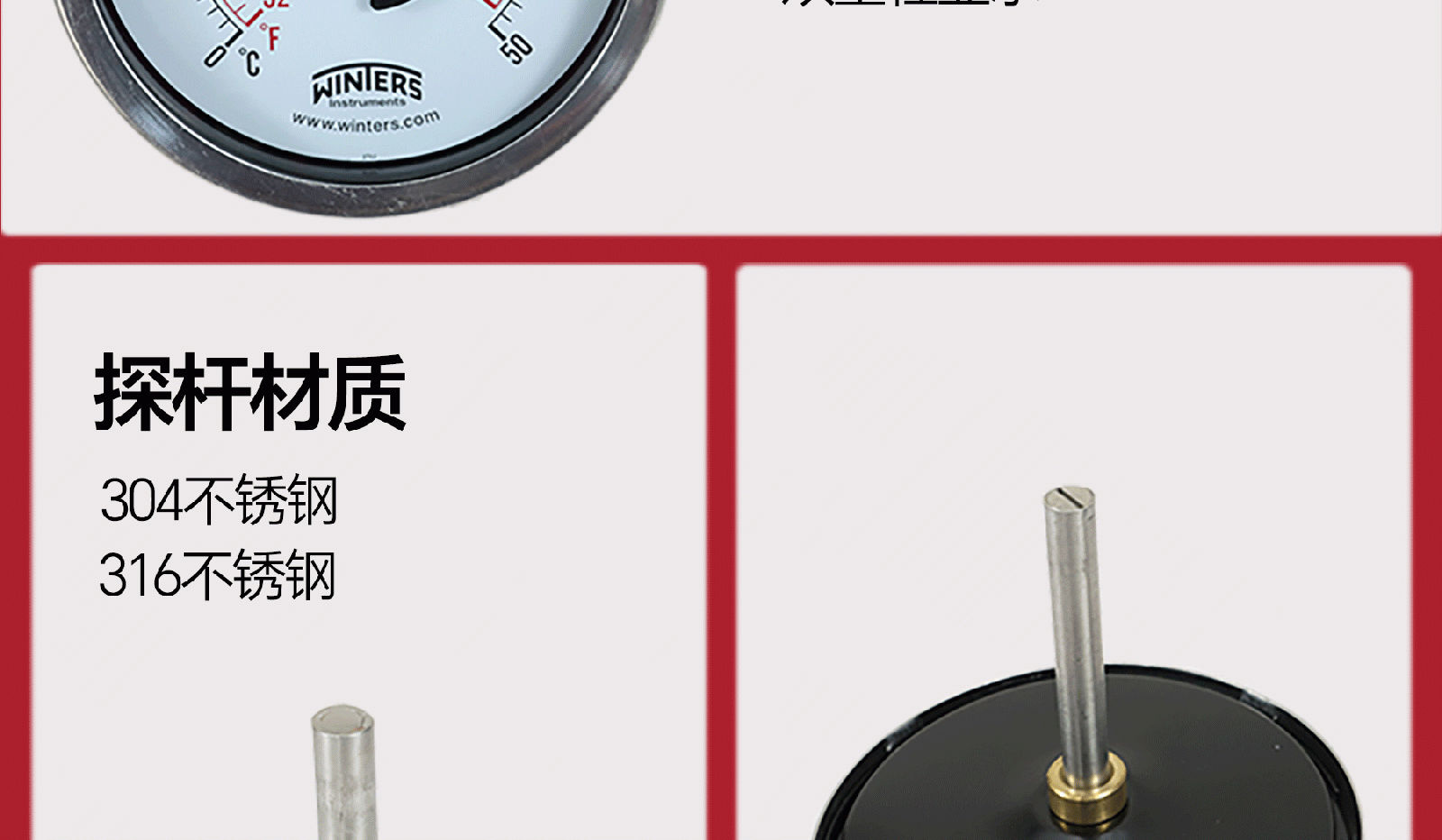 文特斯WINTERS双金属温度计轴向100mm精度2.0热水管道锅炉TBT-40