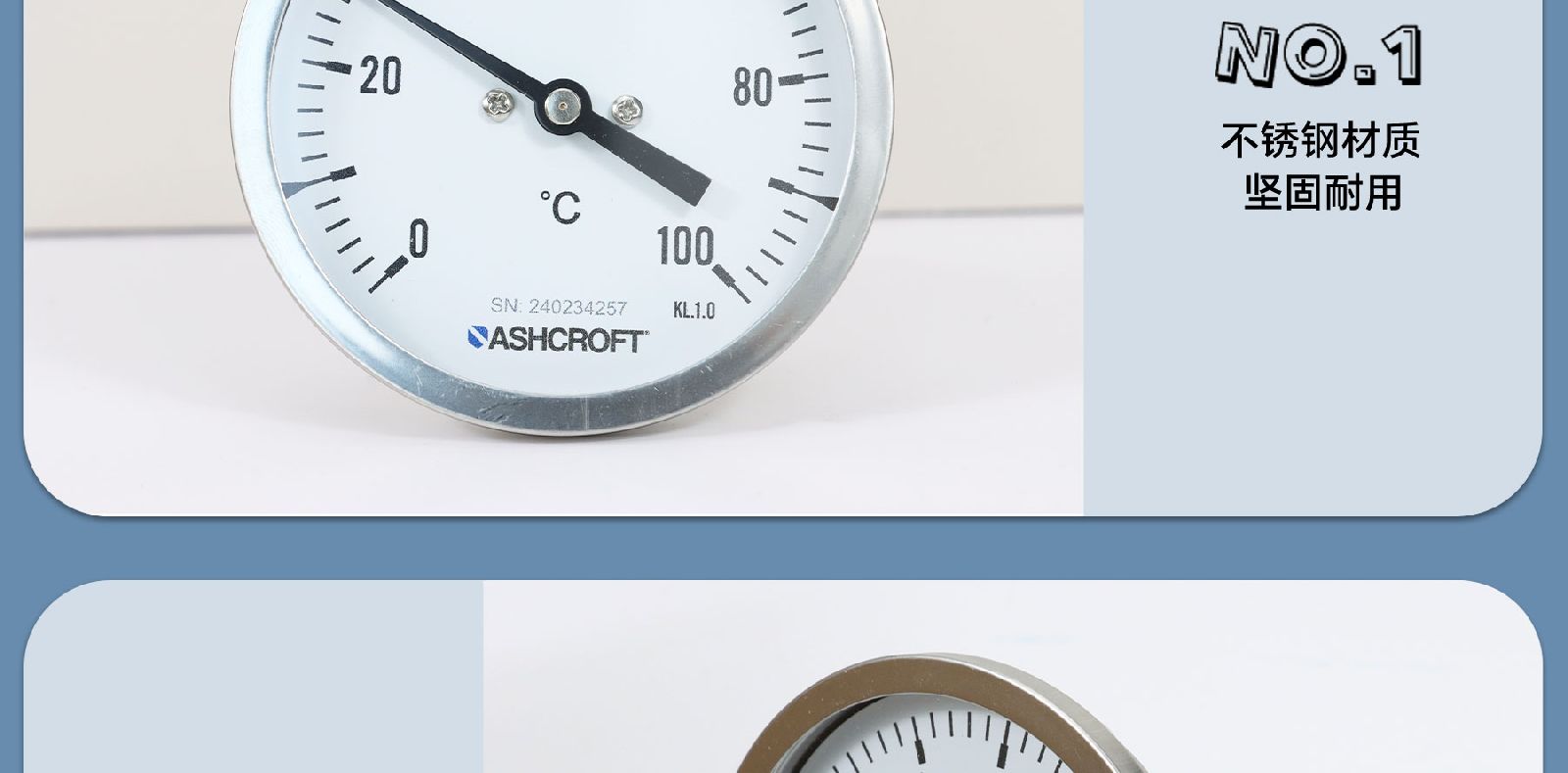 雅斯科Ashcroft不锈钢双金属温度计F1系列