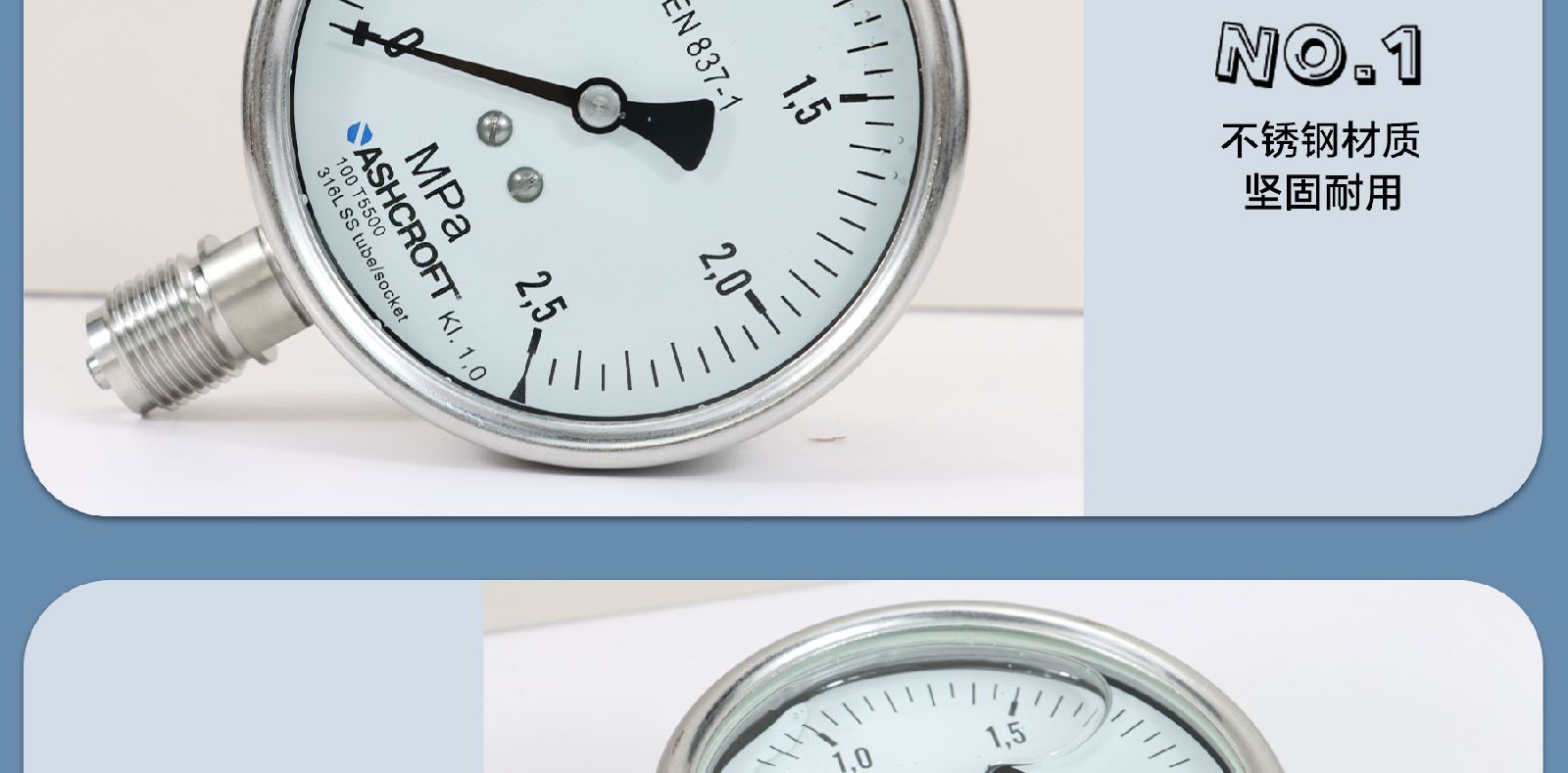 雅斯科Ashcroft弹簧管压力表径向不锈钢焊接130%过载保护T5500径向