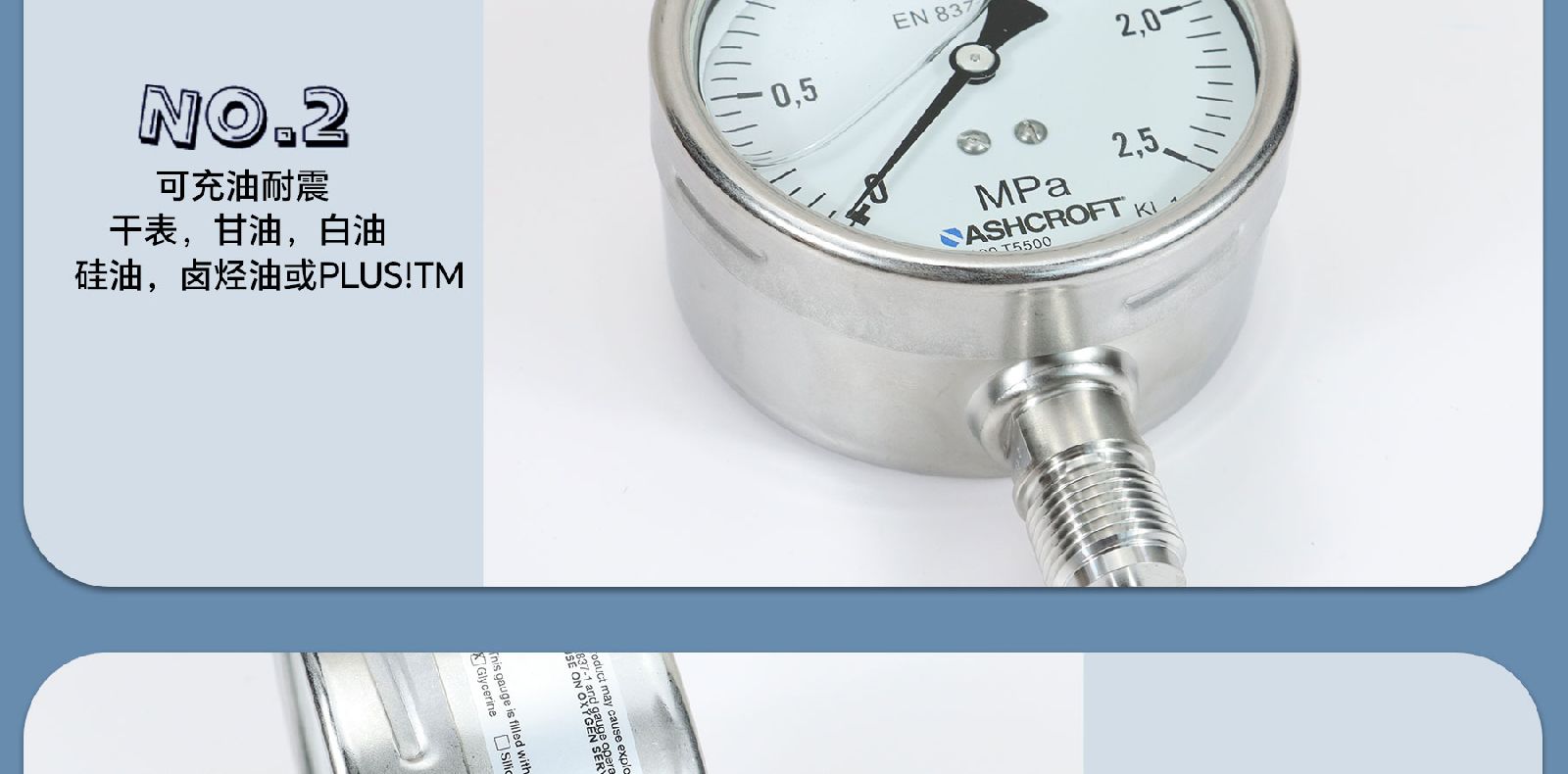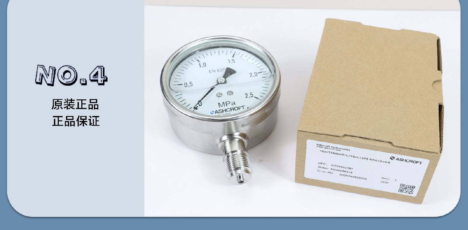 > 雅斯科Ashcroft弹簧管压力表径向不锈钢焊接130%过载保护T5500径向