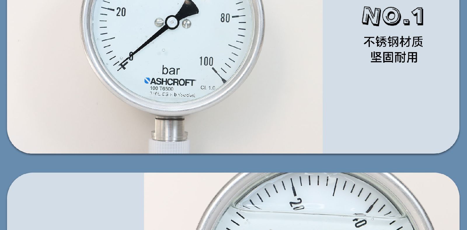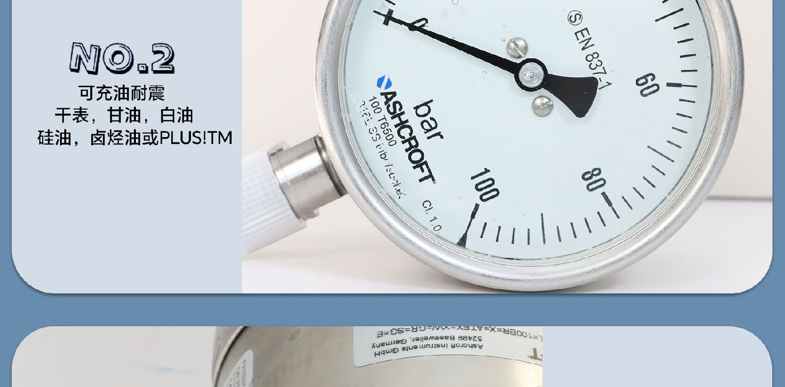 > 雅斯科Ashcroft全不锈钢弹簧管压力表标配安全玻璃包邮T6500径向