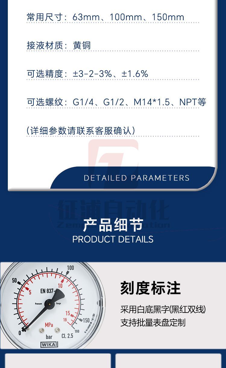 威卡WIKA全不锈钢压力表径向抗负荷变换能力好IP65包邮233.50.160