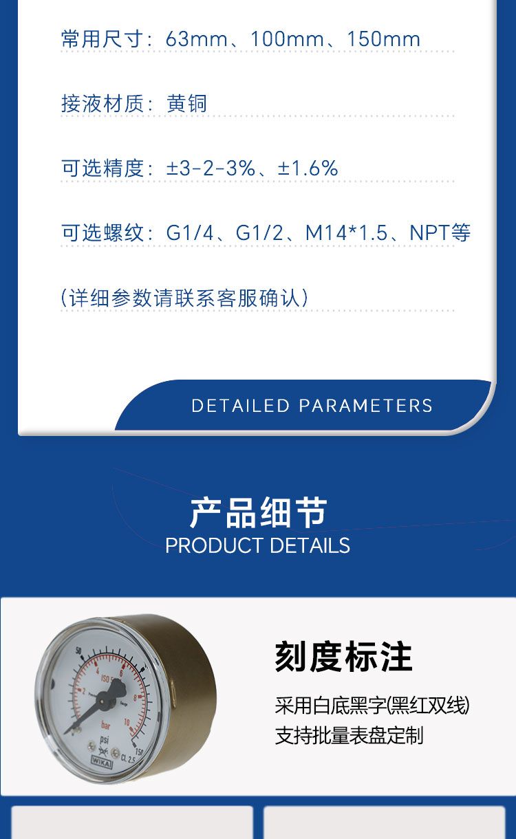 > 威卡WIKA波登管压力表表壳带金属铜漆2.5级真品包邮111.11.050