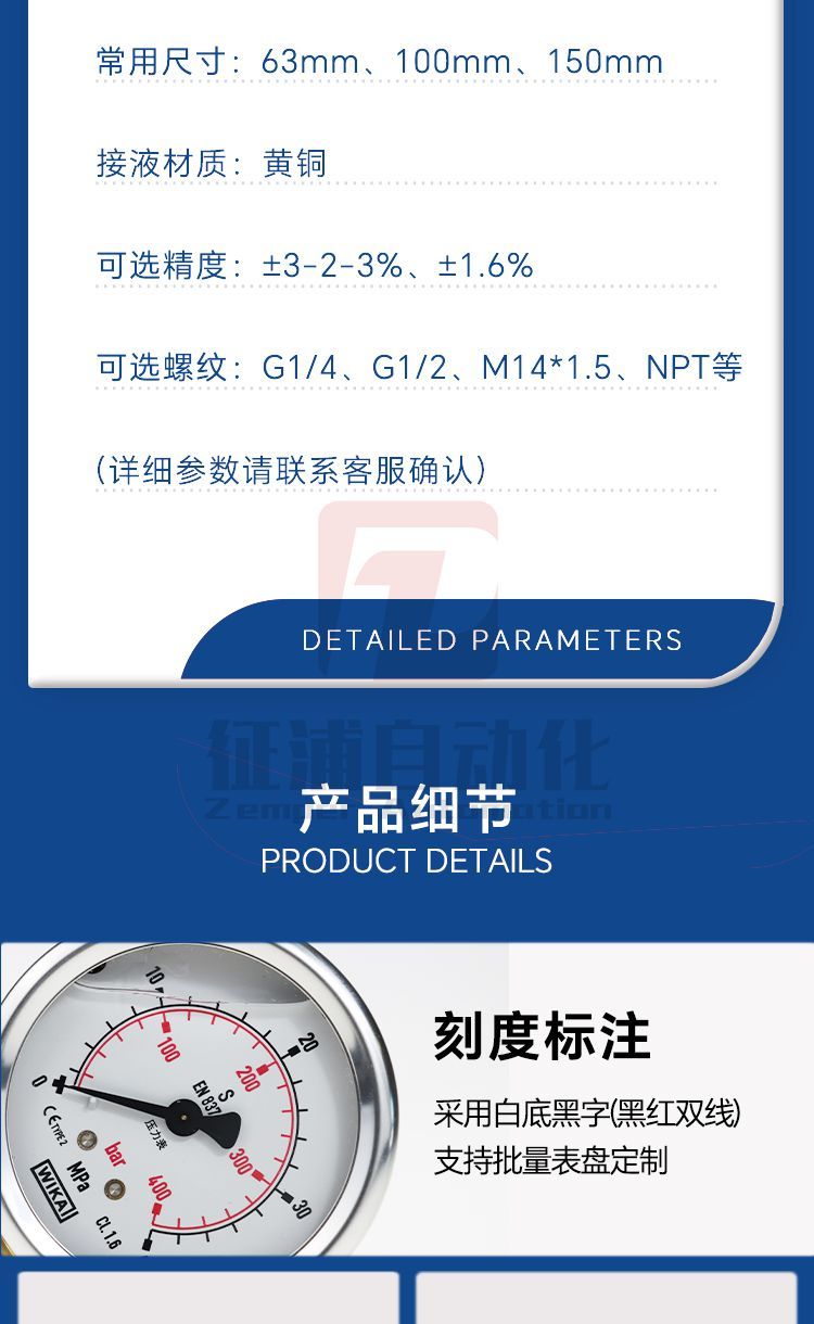 > 威卡WIKA波登管压力表径向半不锈钢材质抗震动冲击包邮213.53.063