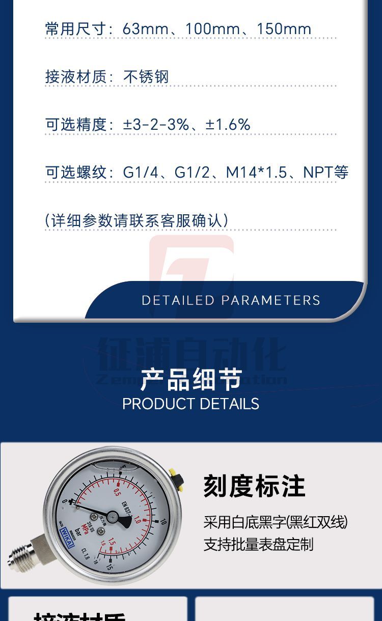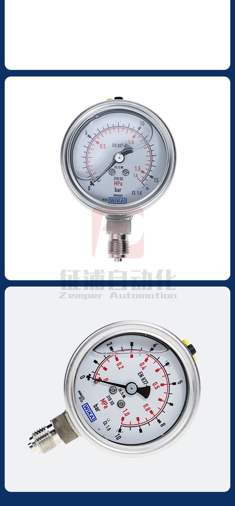 > 威卡WIKA波登管压力表径向不锈钢劳氏和高斯认证包邮233.50.063