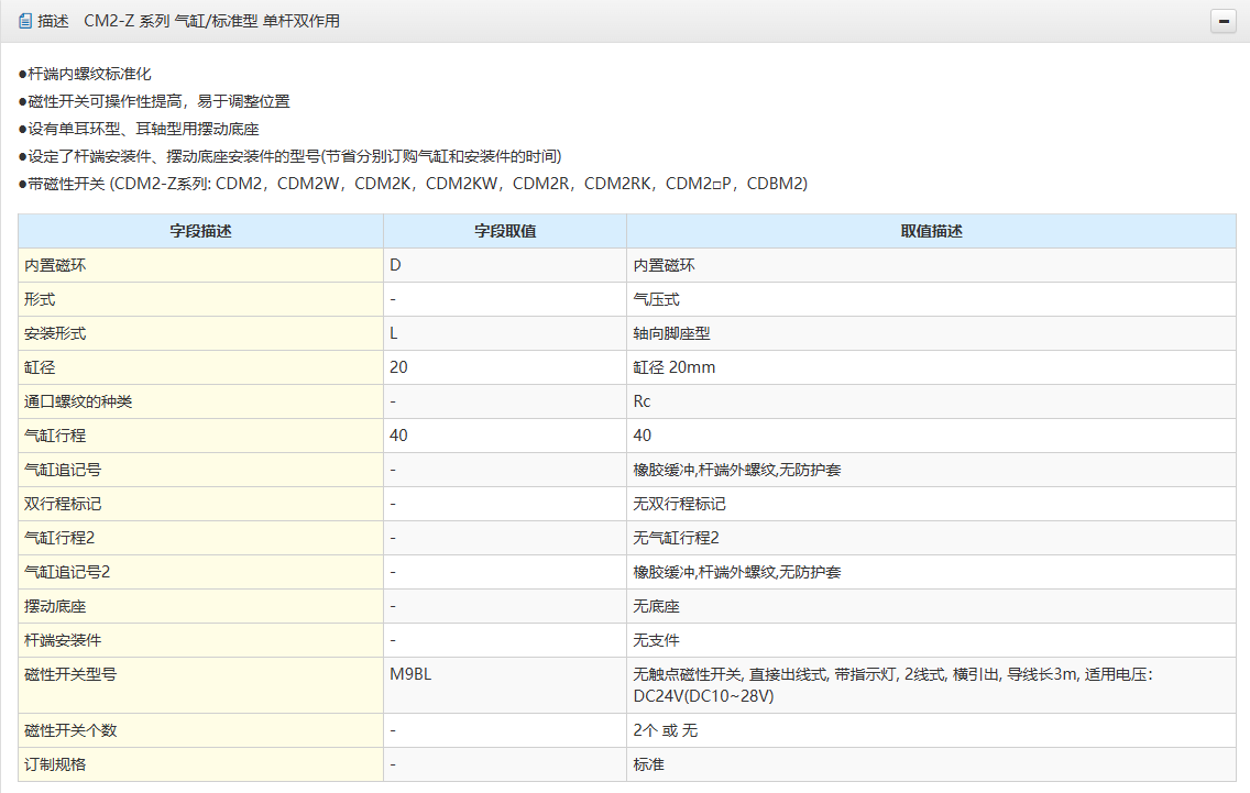 > SMC CM2-Z 系列 气缸/标准型 单杆双作用 CDM2L20-40Z-M9BL
