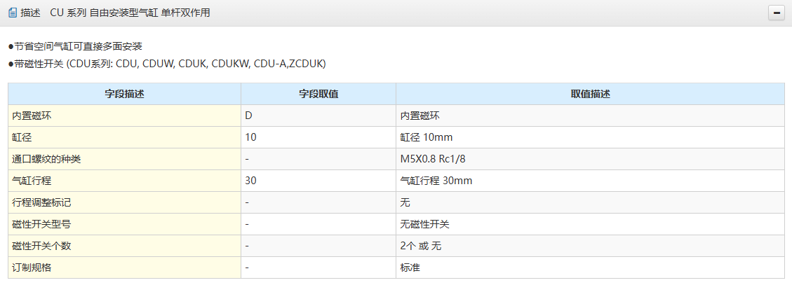 SMCCU 系列 自由安装型气缸 单杆双作用CDU10-30D