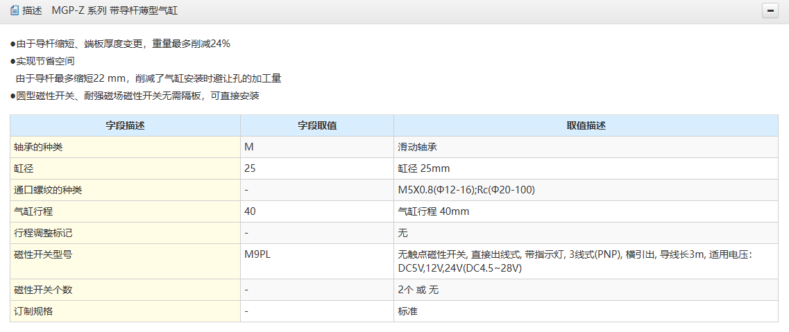 SMC MGP-Z 系列 带导杆薄型气缸MGPM25-40Z-M9PL
