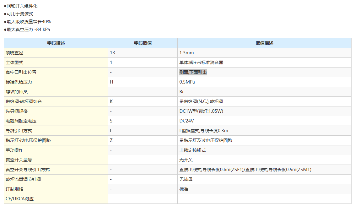 > SMC ZM 系列 真空组件 带阀·开关ZM131H-K5LZ