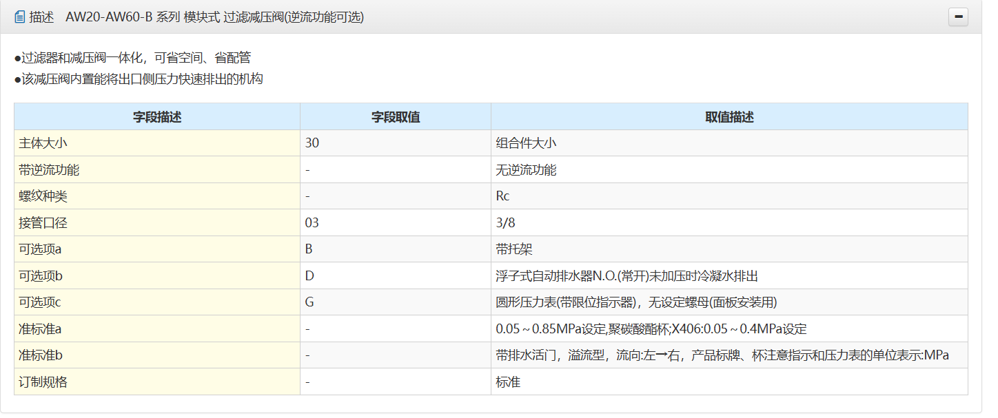 > SMC 模块式 过滤减压阀 可选逆流功能AW30-03BDG-B