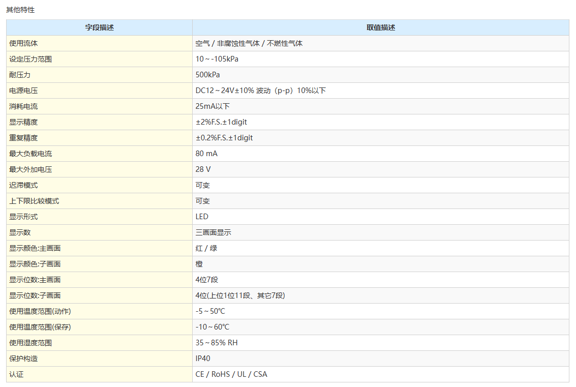 | | 类型:数字 | | 测量范围:10~-105kPa kPa | | 测量介质:空气 / 非腐蚀性气体 / 不燃性气体 | |